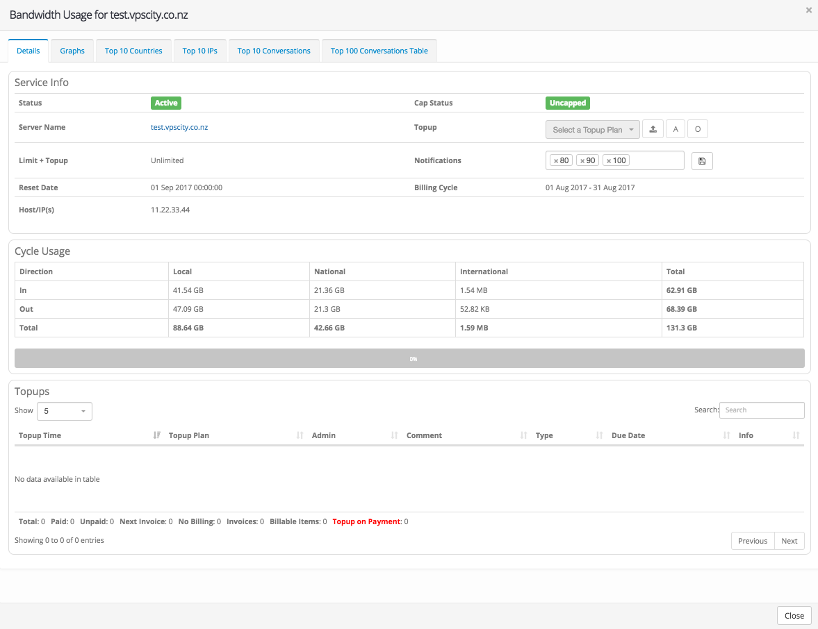 Our Bandwidth Usage monitor helps you understand how much data flows across your network. You can access statistical and graphical information to further investigate all bandwidth usage. You can top-up extra bandwidth if needed via Bandwidth Usage tool.