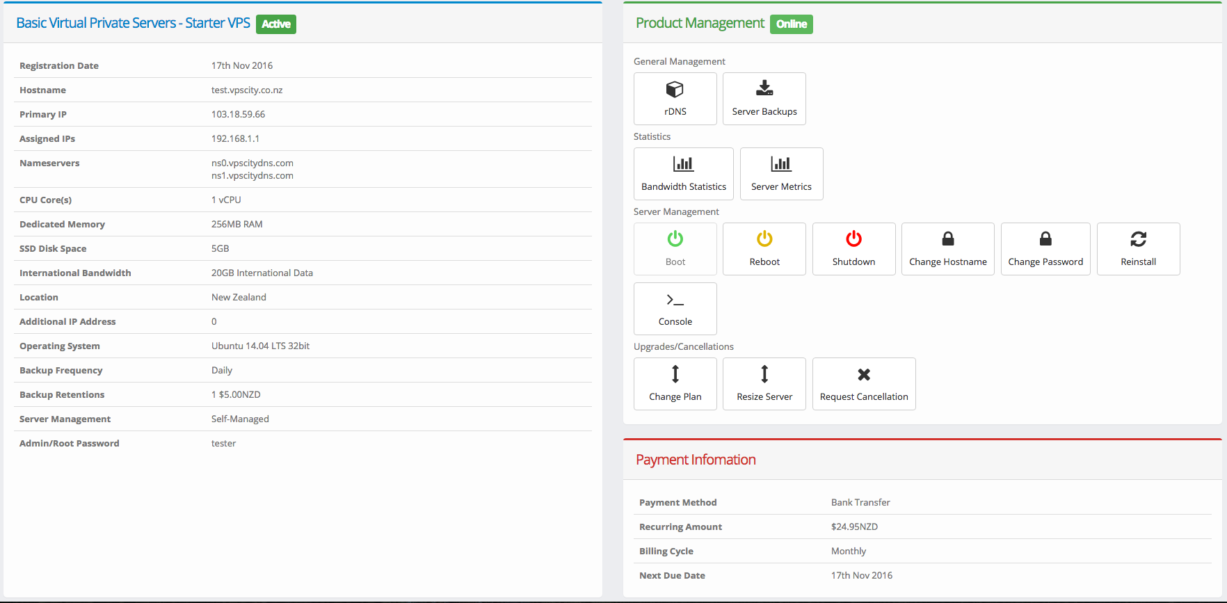 With VpsCity you get a fully featured admin dashboard to manage your products.